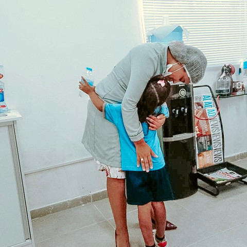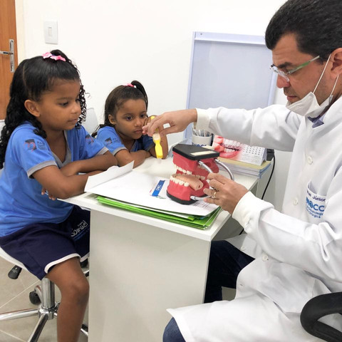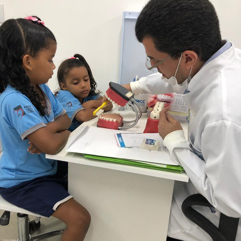 Crianças do Projeto Samuel sendo atendidas em consultório particular, uma parceria com os dentistas Israel Junior e Priscila Rosa.